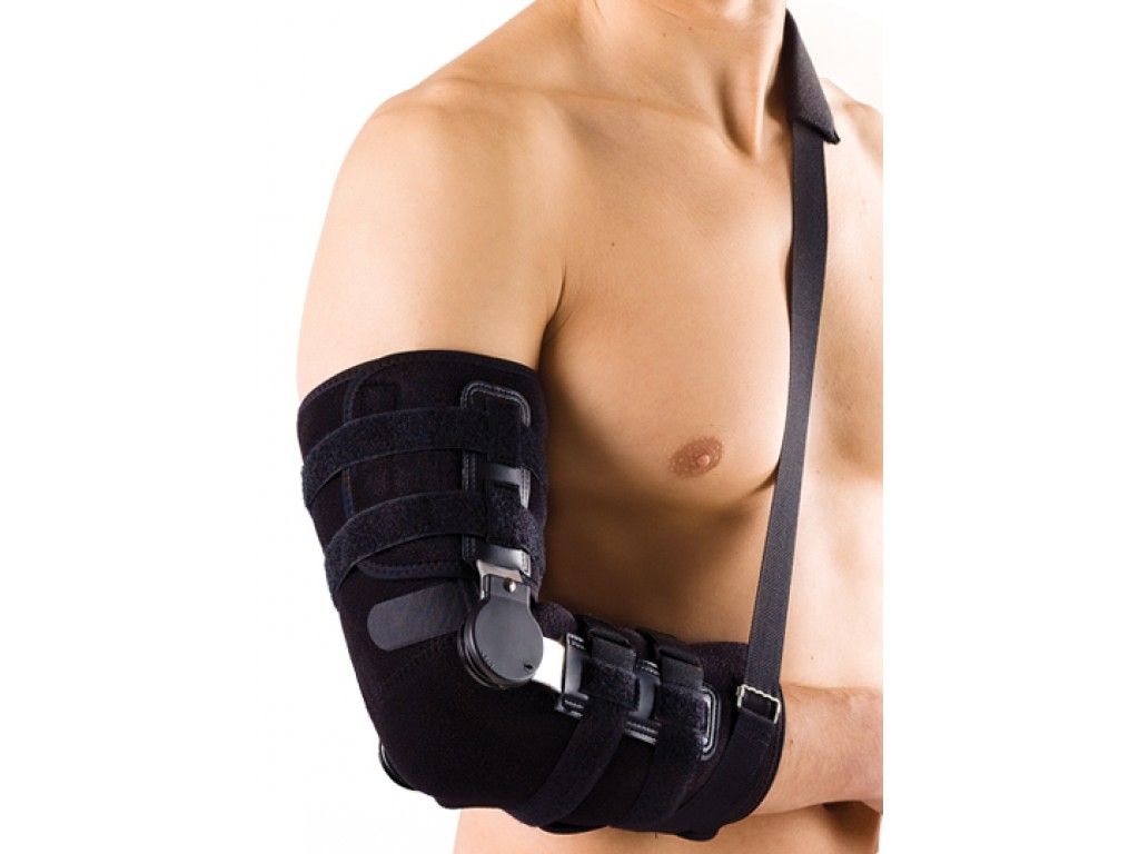 - Разъемный ортез (брейс) на плечо и предплечье позволяет ограничить сгибание и/или разгибание локтевого сустава в необходимом диапазоне.