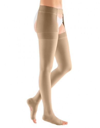 Компрессионный чулок 3-ого класса компрессии mediven plus с застежкой на талии и открытым носком как универсальное решение в лечении заболеваний вен