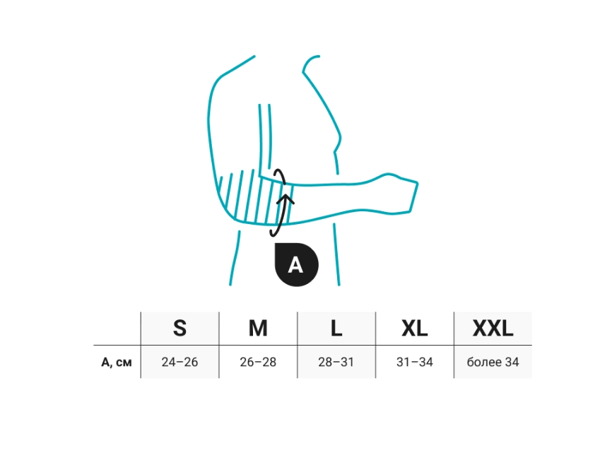 • обеспечивает легкую степень фиксации и компрессионный эффект, способствуя уменьшению отека и улучшению кровоснабжения мягких тканей, прилегающих к локтевому суставу;