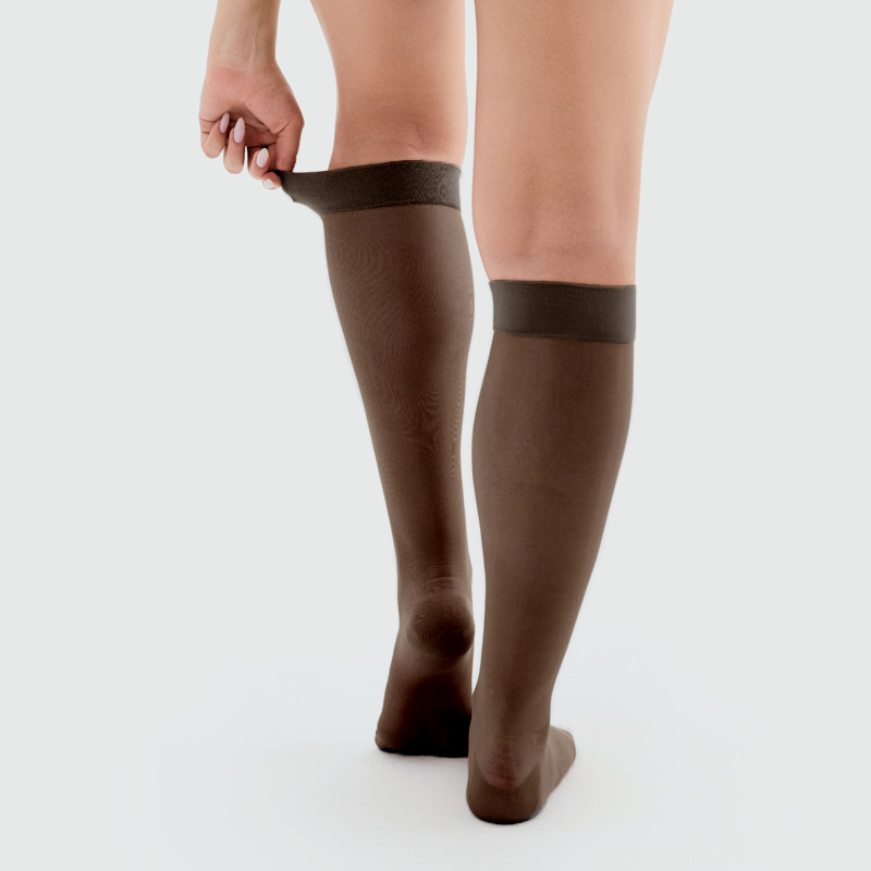 - Анатомическая вязка гольфов создаёт идеальное прилегание и правильно распределяет давление по ноге, обеспечивая физиологически распределенную, градуированную компрессию;