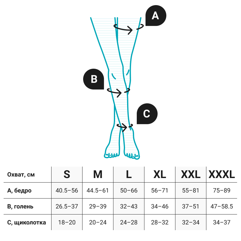 Обратите внимание! При подборе размера гольфов, чулок и колгот руководствуйтесь приведенными здесь таблицами. Измерения нужно проводить утром, до появления отеков на ногах.