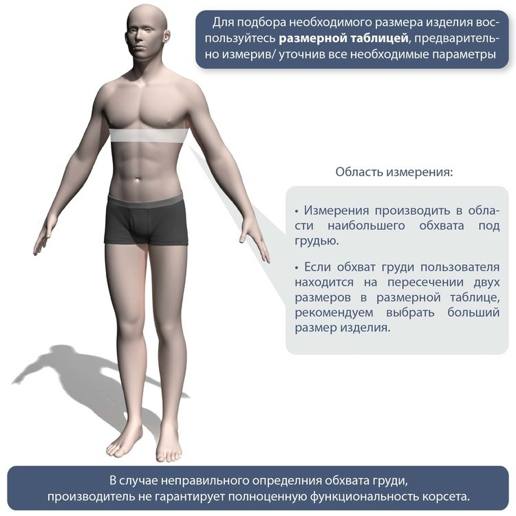 • Если обхват груди пользователя находится на пересечении двух размеров в размерной таблице, рекомендуем выбрать больший размер изделия.