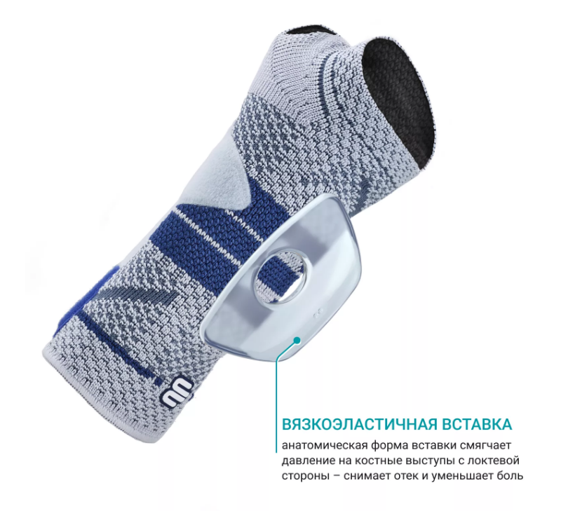 4. Вязкоэластичная вставка анатомической формы смягчает давление на костные выступы с наружной стороны, снимает отёк и уменьшает боль