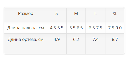 Согласно полученным результатом подобрать ортез на межфаланговые суставы Orlett® по таблице подбора размеров: