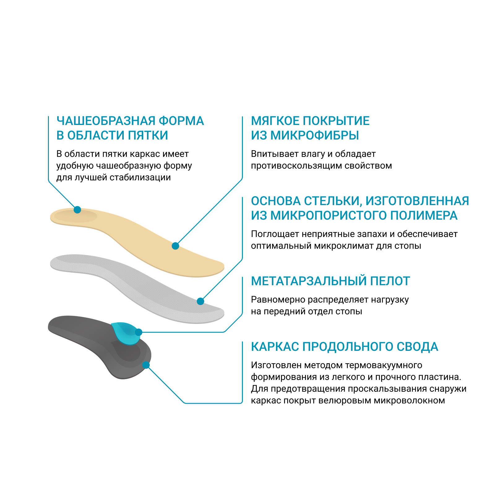 • чашеобразная форма пяточной области помогает стабилизировать стопу в правильном положении.