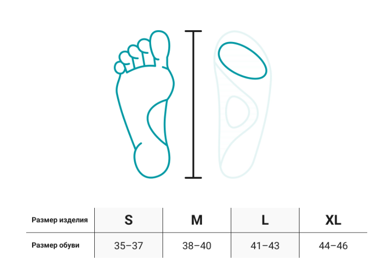 • Самоклеящееся покрытие обеспечивает устойчивое положение изделия в обуви.