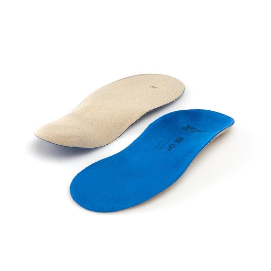 Детские сводоподдерживающие ортопедические стельки с супинатором пяточного отдела, который обеспечивает поднятие внутреннего края заднего отдела стопы. Характеризуются каркасом, продленным до уровня головок плюсневых костей, выраженной выкладкой продольных сводов, чашеобразным углублением под пятку и боковой поддержкой. Покрытие изготовлено из износостойкого материала.