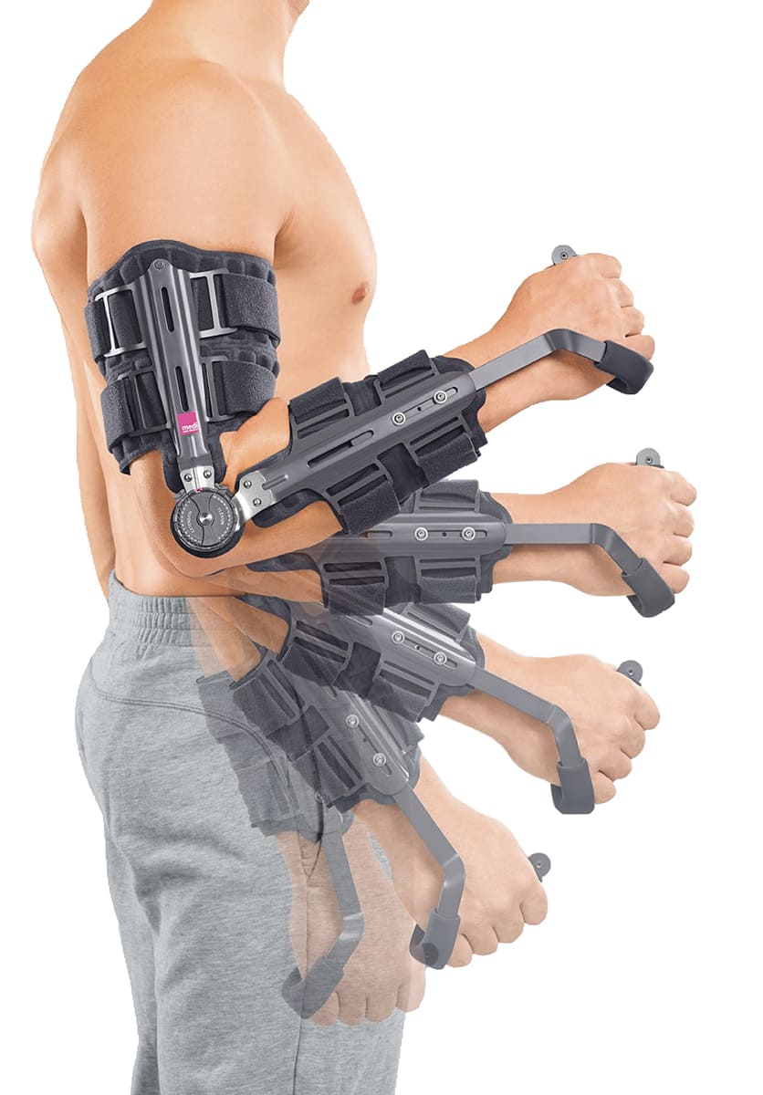 - этапное увеличение амплитуды сгибания/разгибания локтевого сустава при невозможности вращения предплечья позволяет сократить период реабилитации и улучшить функциональные результаты лечения